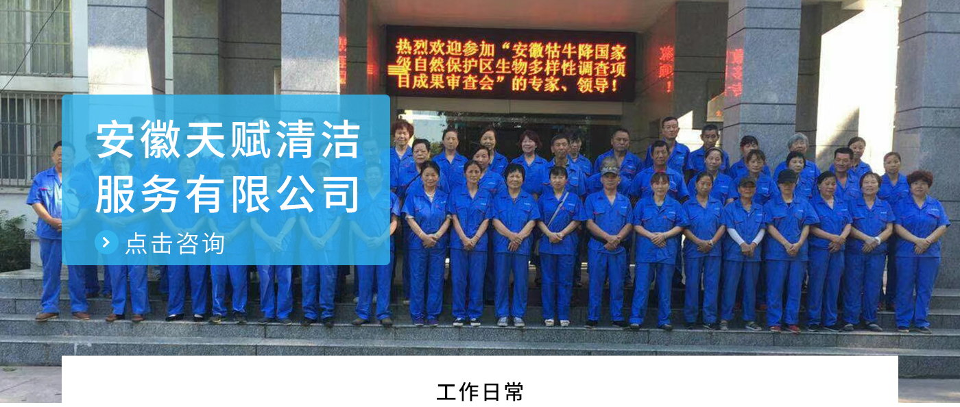 安徽天賦清潔服務有限公司是的服務型企業,主要從事道路清潔、物業托管保潔、工程開荒、高空作業、地毯清洗、石材翻新等多項服務為一體的環保型清潔公司。公司管理機制完善,清潔作業經驗豐富,擁有技術力量,嚴格實行崗前培訓—崗中督查—上崗在培訓的員工管理措施,憑著優良的清潔質量和嚴格的督查管理,為眾多企事業單位、醫院、酒店、廠區商場、物業、道路、學校、公園等提供后勤清潔服務。在業內擁有良好的口碑。工作人員,服務態度優,竭力為客戶提供好的保潔服務。安徽天賦清潔服務有限公司:致力于長期合作關系,提高服務質量,提供高標準的清潔服務。公司的經營理念:為營造一個更清潔、亮麗的生活和工作環境而努力!“誠信”是公司成功保證?!翱蛻糁辽?,信譽為首”是公司宗旨。高標準提供服務,維護客戶利益、形象,是我始終不渝的目標。